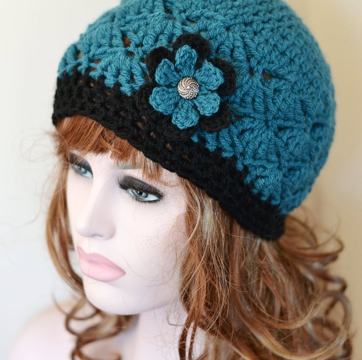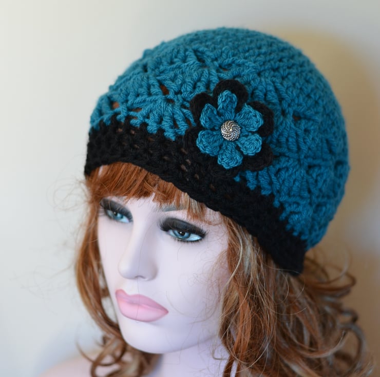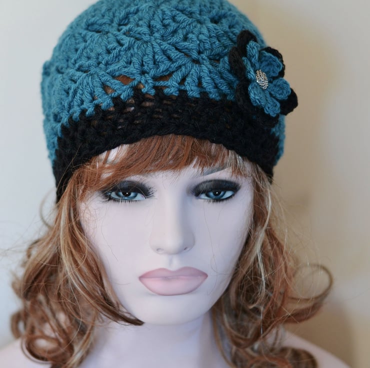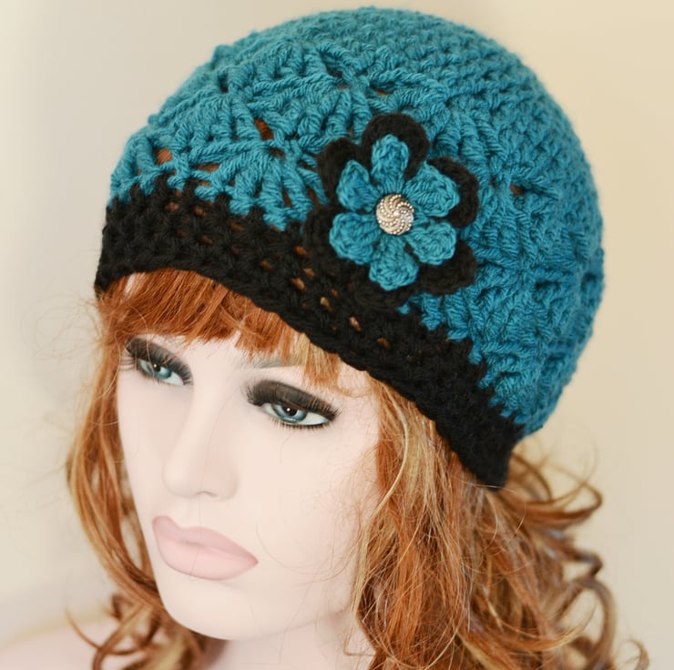 Finished with a double centred crochet flower with a silver tone button in the middle of the flower