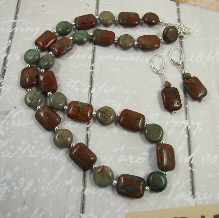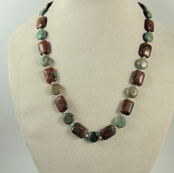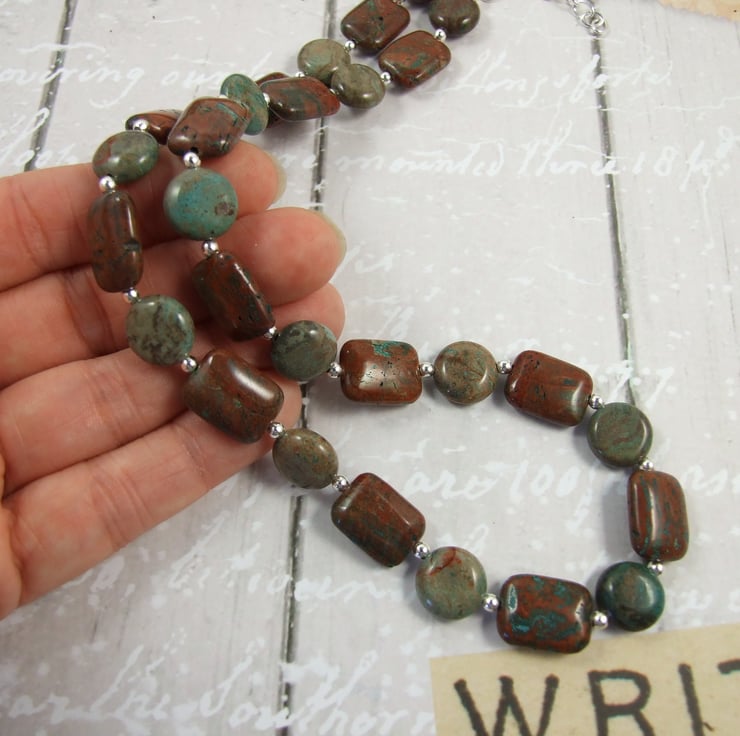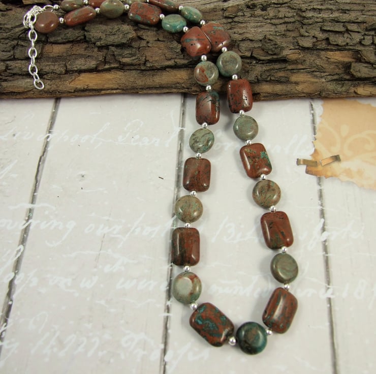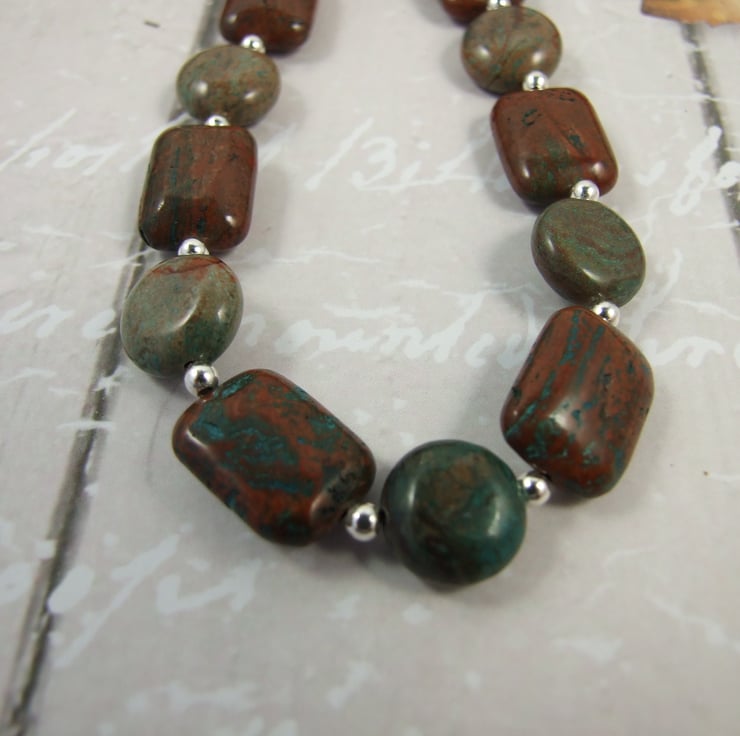 Ocean Jasper Necklace. Sterling Silver beads and fittings with shades of green Ocean Jasper Beads.