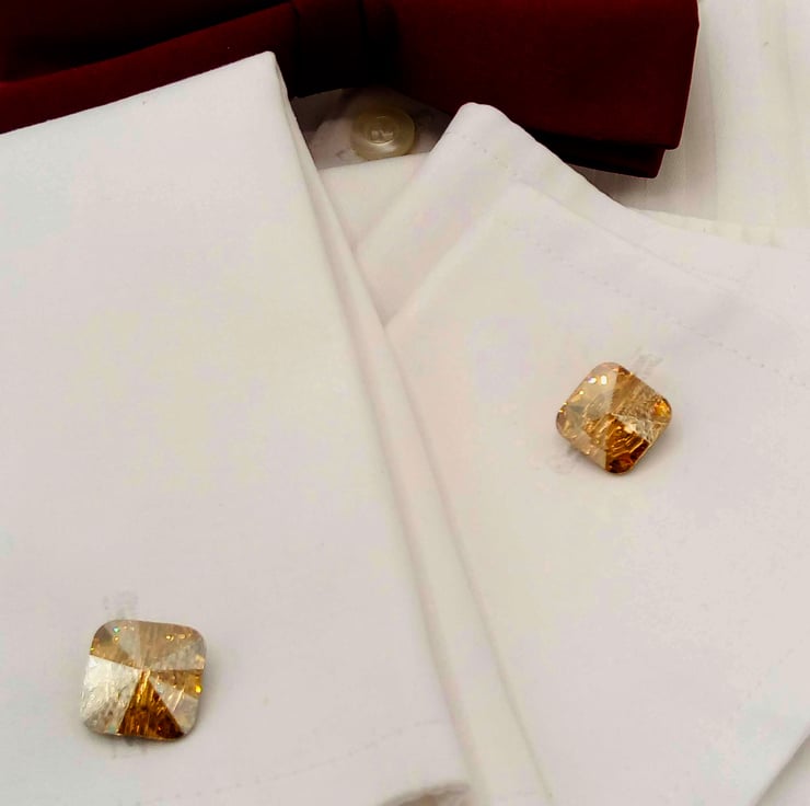 Golden Shadow Square Crystal Button Cuff Links, Gift for Him, Crystal Cuff Links, Cuff Links, Gift for Dad, Gift for Father, Anniversary Gift, Valentine Gift, Square Cuff Links, Fathers Day Gift, Topaz Coloured Cuff Links