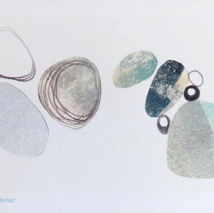 Inspired by beach pebbles, zen meditation, rockpools and water I created a series of pieces in collage. Minimalist abstracts exploring balance in weight, shape and tone.