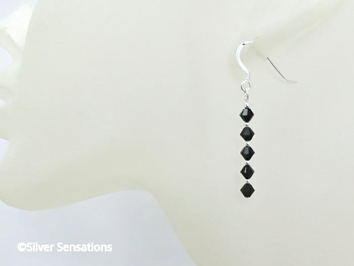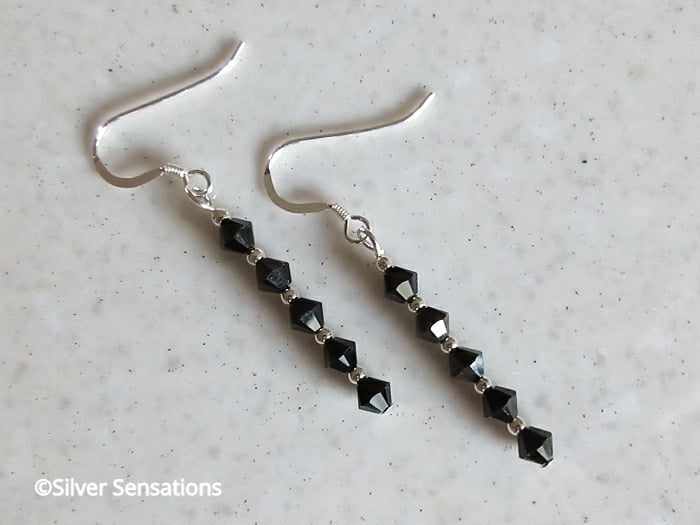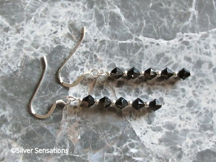 Pure Black Highest Quality Crystals & Sterling Silver Earrings