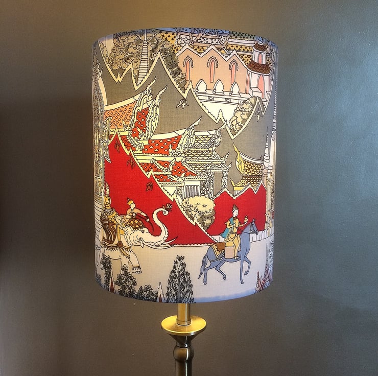 This is a really unusual lampshade - perfect for a contemporary or traditional themed room but would also sit well within a cottage scheme. The fabric design is called 'City of Angels' by Jonelle.