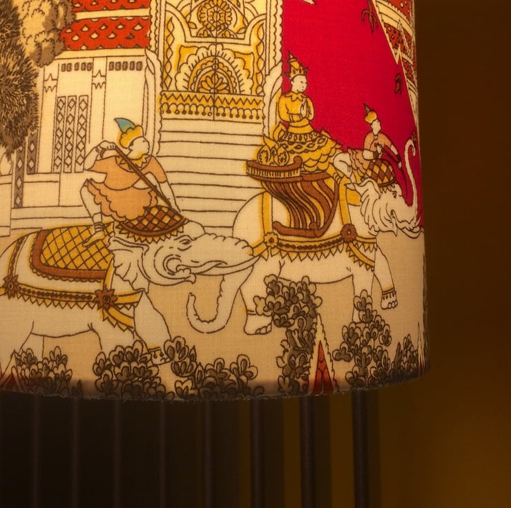 Oriental Scene with Elephants Jonelle Vintage Fabric Lampshade