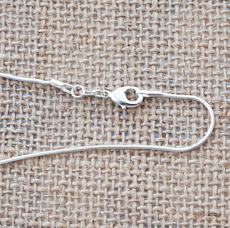 A 16 inch silver plated snake chain is included. If you would prefer an 18 inch chain then please let me know in the 'note to seller' box at checkout.