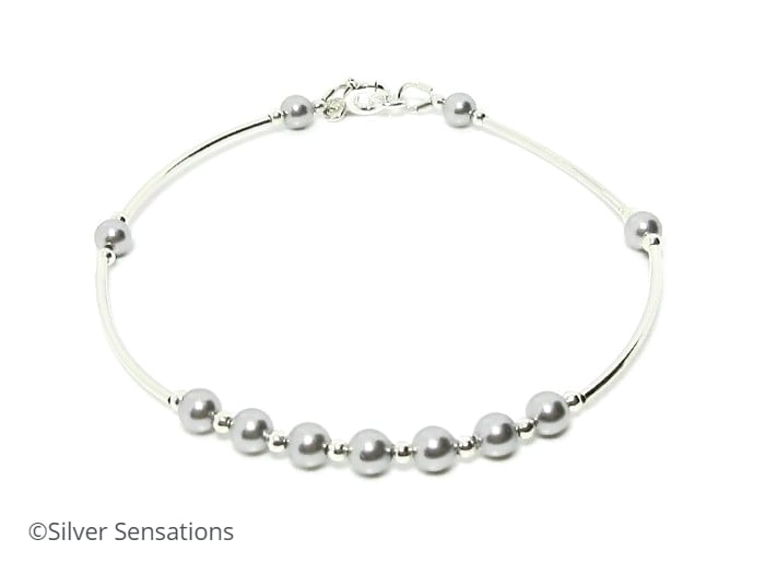 I uniquely designed this grey pearl bracelet with stunning pale grey premium pearls from the world famous crystal company in Austria.