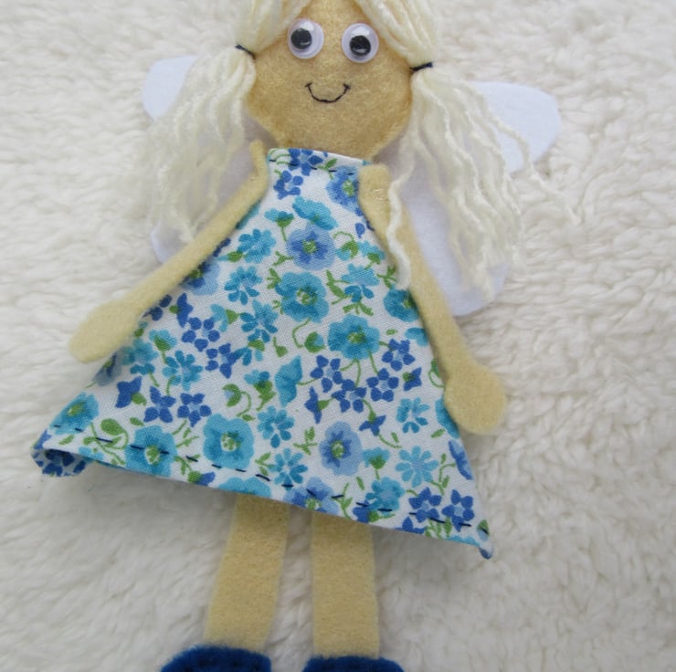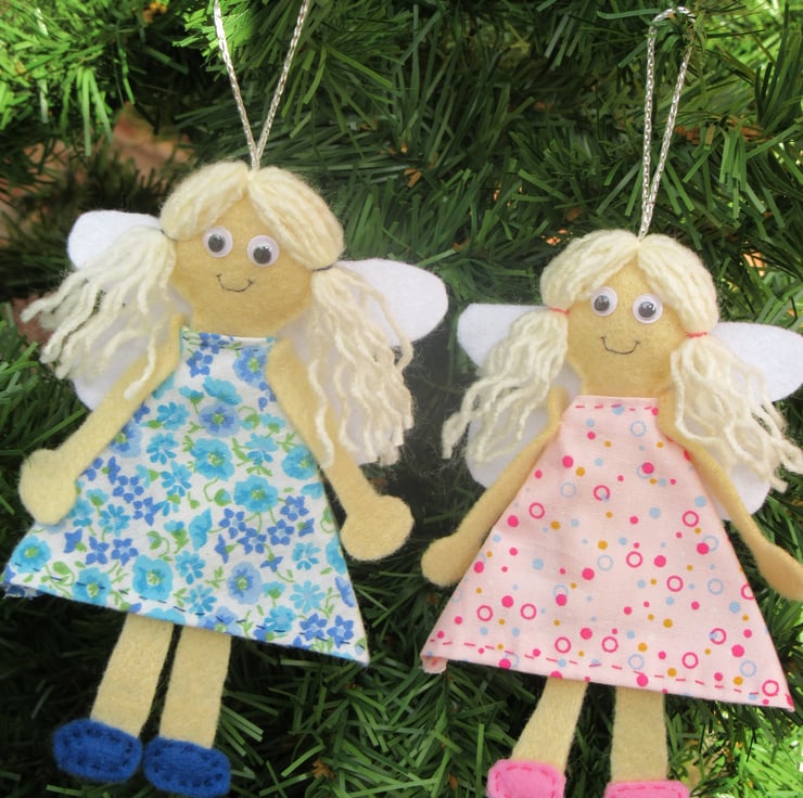 Each fairy decoration is made from felt and cotton fabric all hand cut and stitched from my own design.