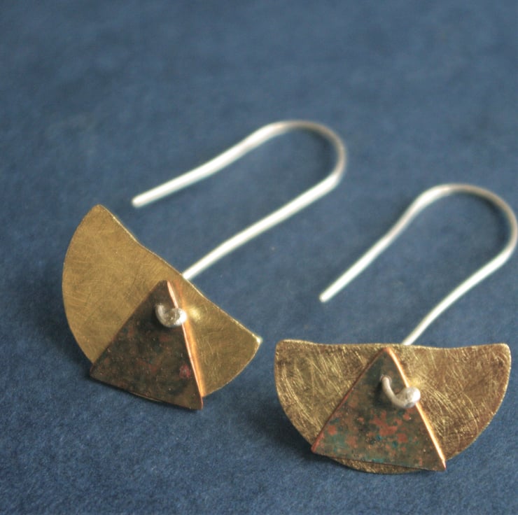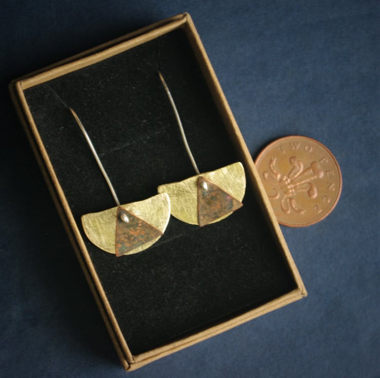 There is the possibility of having two different pairs of earrings with these , as you could take away (with a bit of care) the triangles to leave just the brass arc shape!
