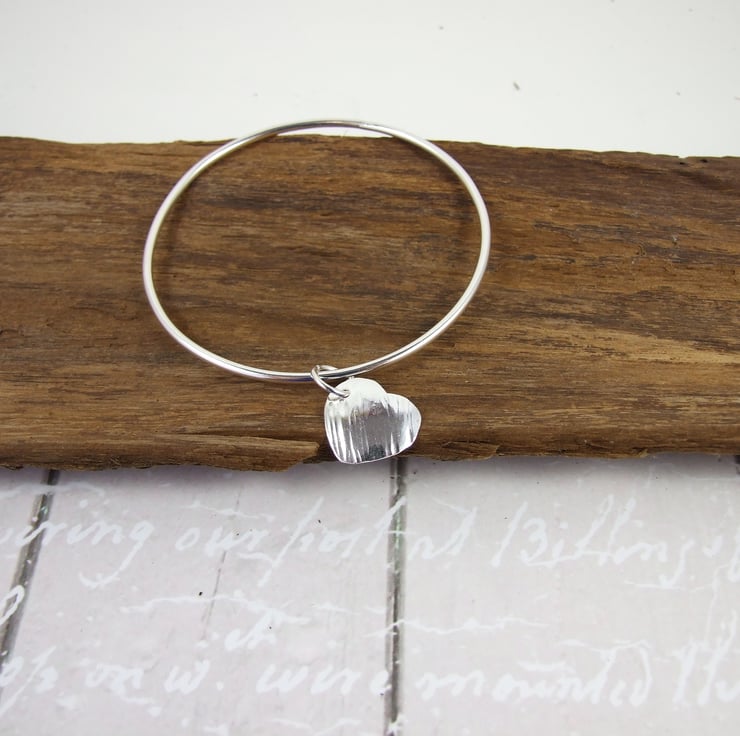 Sterling Silver Heart Charm Hand Forged Bangle