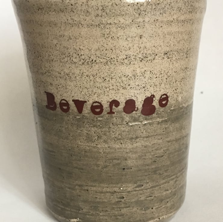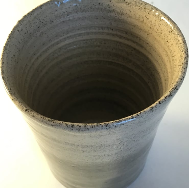 Beverage beaker. Lovely and tactile as this one is made with quite a groggy clay. Almost looks quite concretey! It's actually made with an earthenware clay though. Nice for hot or colds beverages....oooh I love the word "Beverage"