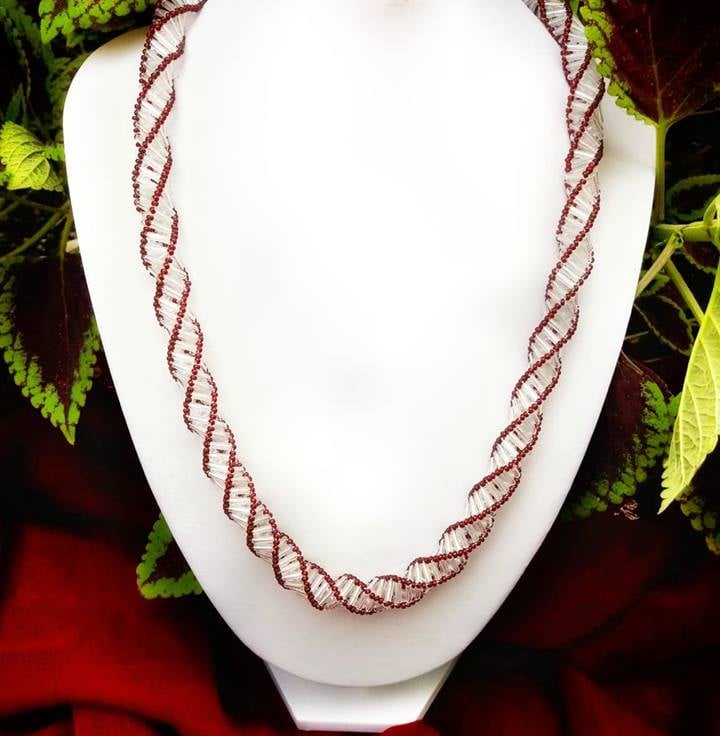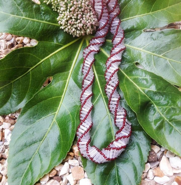 Handmade beadwork necklace, created using needle and beaders thread to produce this wonderful spiral effect rope. This jewellery making style is called bead weaving.