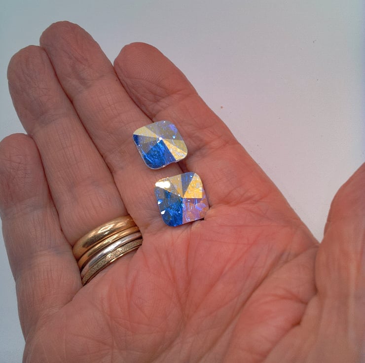 Square Crystal Buttons Cuff Links With Blue Flecks, Gift for Him, Cuff Links, Father's Day Gift, Gift for Dad, Birthday Gift, Anniversary Gift, Gift for Father, Crystal Cuff Links, Square Cuff Links