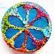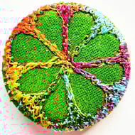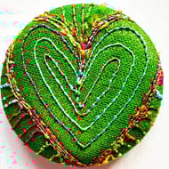 Made from layers of fabric including hand dyed Egyptian cotton and silk fabrics using the free machine embroidery style of sewing