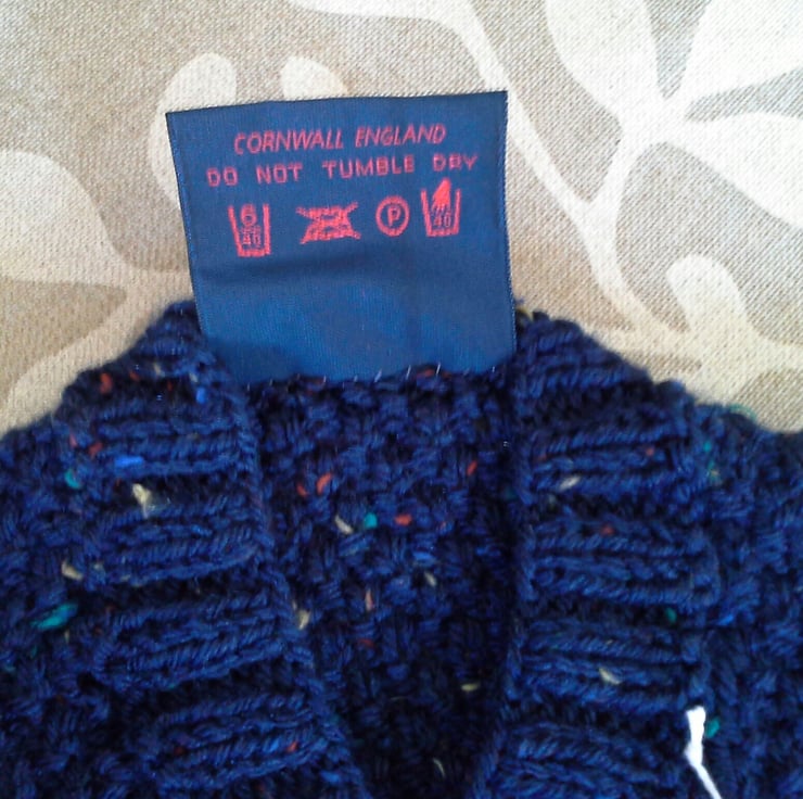 Baby knitwear is designed and hand crafted by Demelza Designs in Cornwall meeting UK baby safety standards, Only branded premuim acylic, acrylic/natural fibre blends or pure natural fibre yarns are used in baby knitwear which conforms to BS984/76 standards.