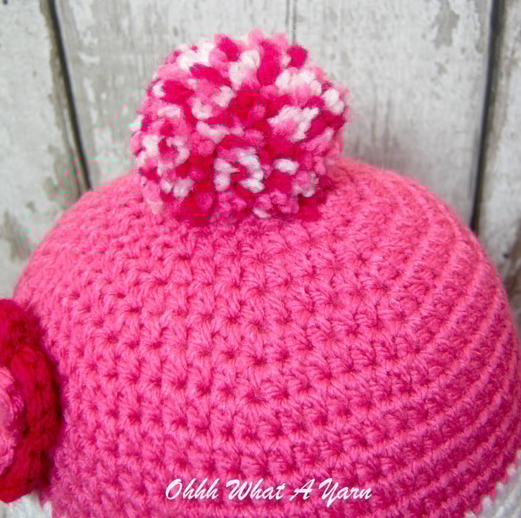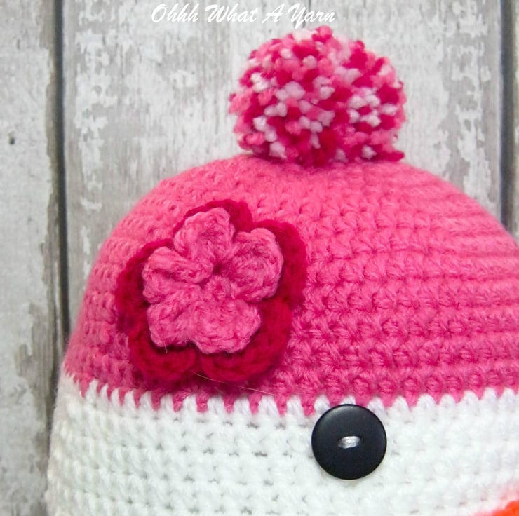 I had made lots of snowmen hats and I decided that the little ladies needed a more girly design of their own and this cutie is the result.