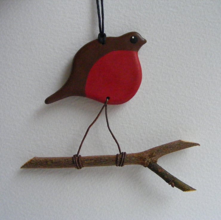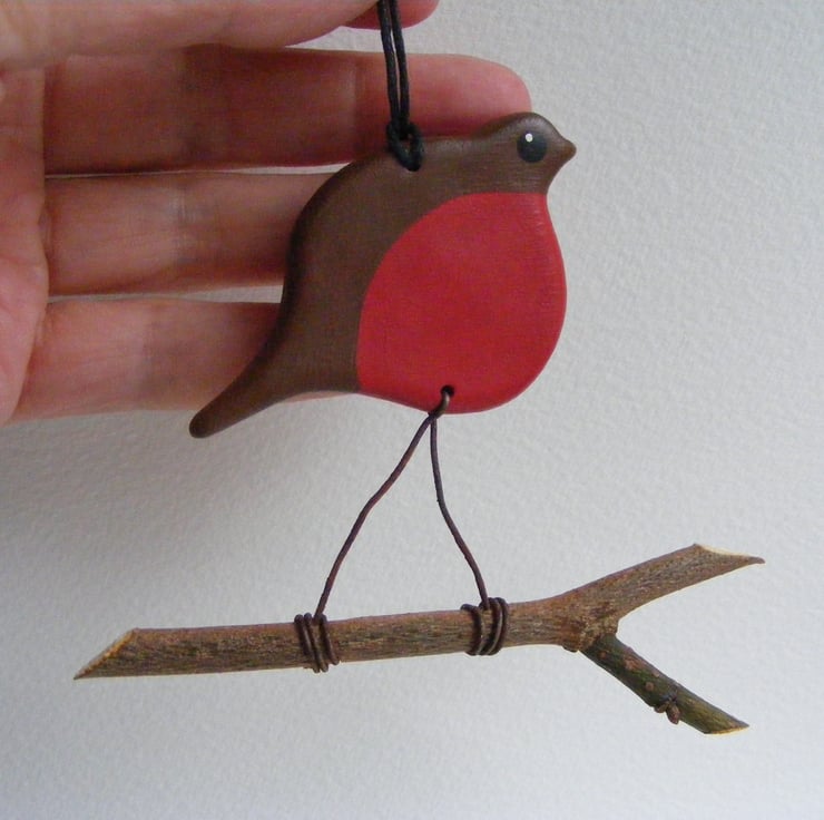 This little bird sitting on a twig is made from earthenware clay and fired once in an electric kiln, it measures from top of head to twig 8cm, the twig is 10cm long. I use acrylic paint to decorate the bird both sides and then seal with varnish to protect the colour, keep away from strong sunlight.