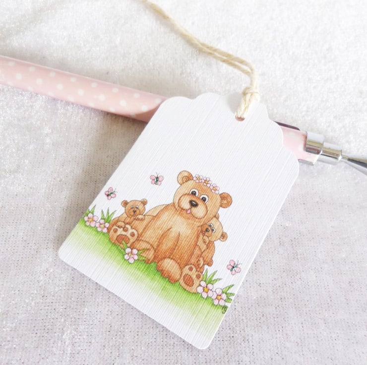 These cute mammy bear gift tags have been designed using my own original watercolour illustration. I have designed them to match and compliment my handmade cards in the same design.