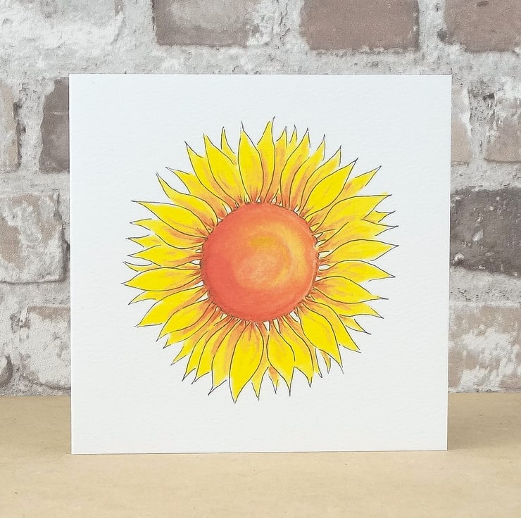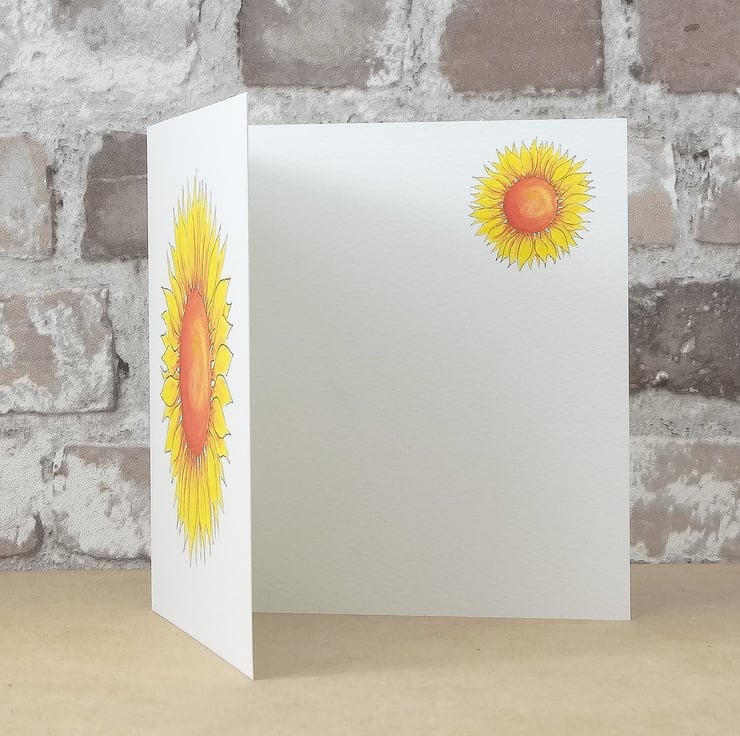 This white eco friendly sunflower card has been printed using 100% recycled felt white finish 270g card. They have lovely felt white textured finish as you can see in the photographs above. This floral card has been printed with my own original sunflower artwork and has been left blank inside for your own special message.
