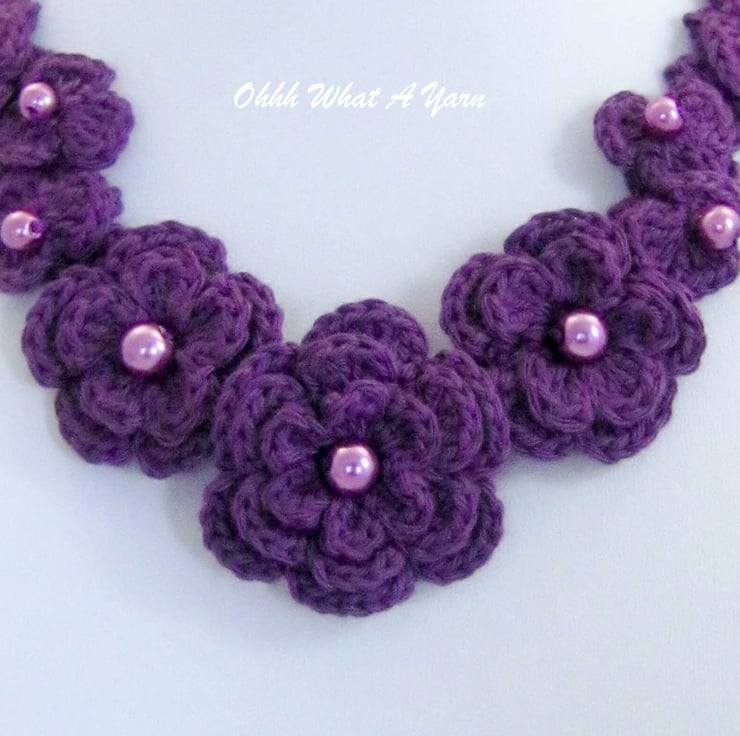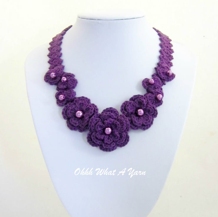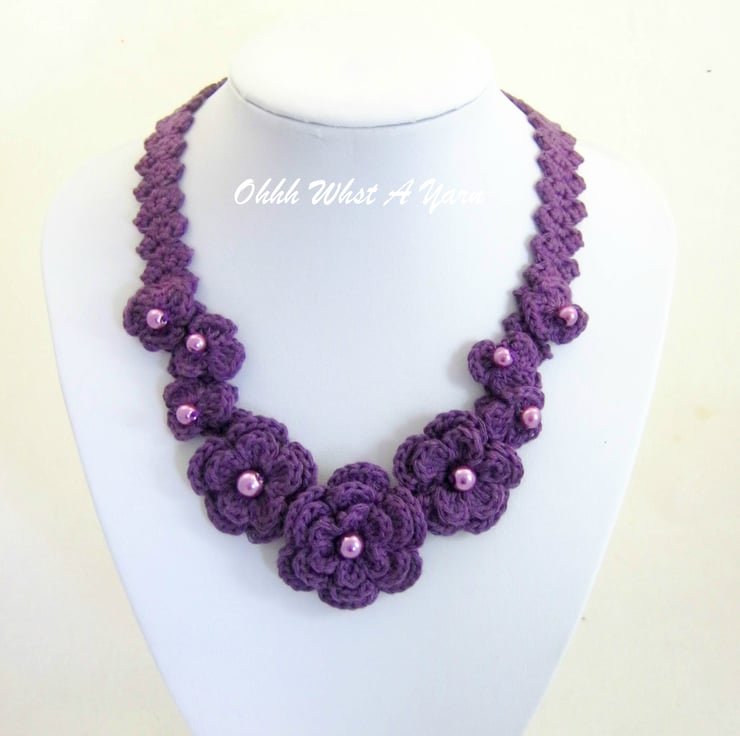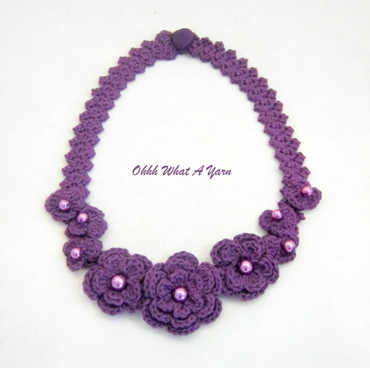 I had lots of lovely cotton crochet yarns and I wanted to make something a wee bit different and I love purple so this design was my first crochet jewellery piece.