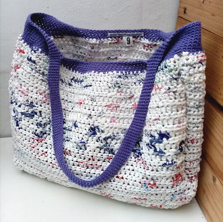 Gorgeous hand made large bag crocheted from recycled plastic bags. I have been making these bags for a few years and this is bag number 9.