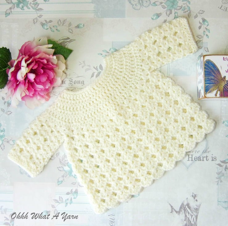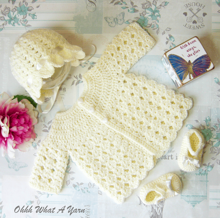 I love traditional vintage crochet patterns and I loved this little bonnet and coat and thought it would be a perfect set for a new baby.