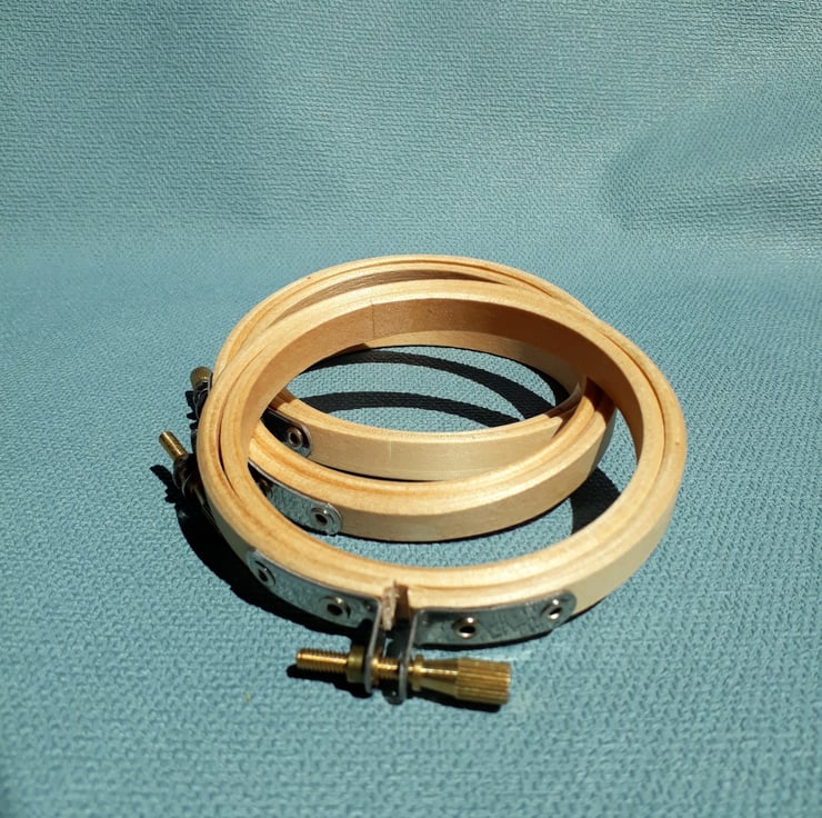 The combination of a embroidery hoop and fabric to make a useful addition to your sewing box.
