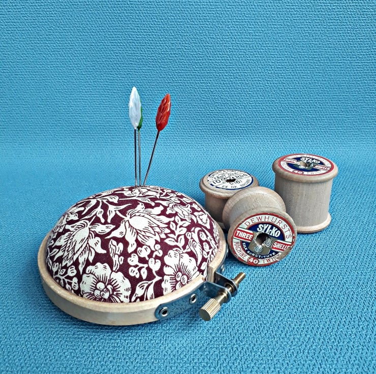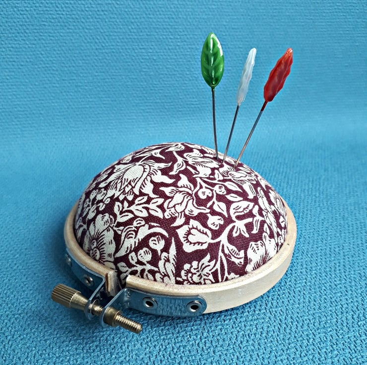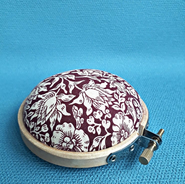 I have designed and made a pin cushion using a 3 inch embroidery hoop which also has a wooden base.