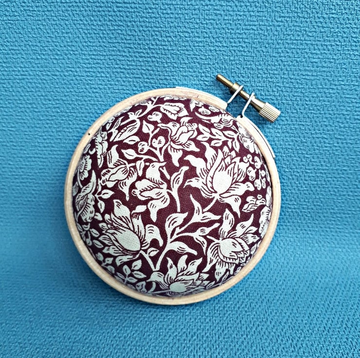 Keeping your pins and needles safe whilst sewing, the 3 inch embroidery hoop pin cushion is perfect for a sewing enthusiast and crafter.