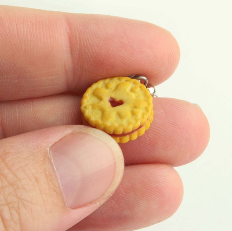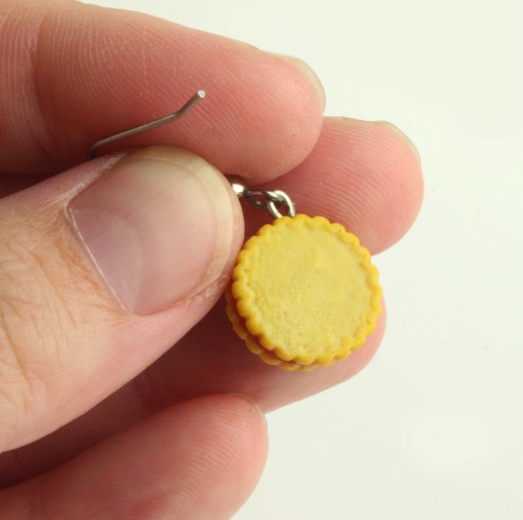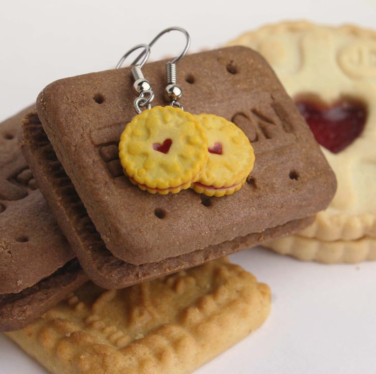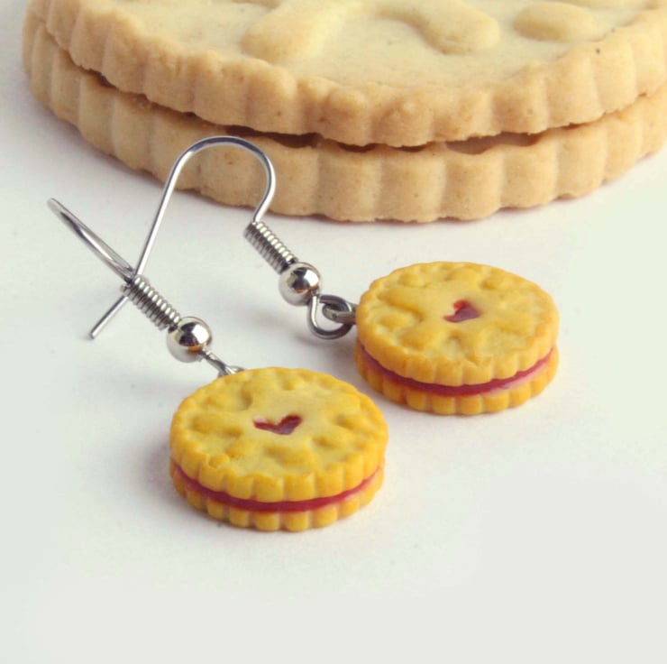 These Jammy biscuit earrings have been hand made in polymer clay and hung on hypo allergenic surgical steel ear wires, and they come in a lovely black gift box. Sure to be enjoyed by any accessorizing biscuit lover!