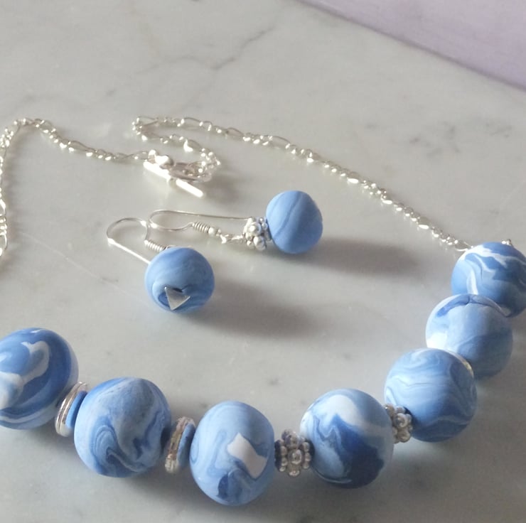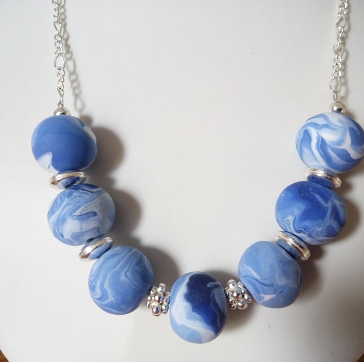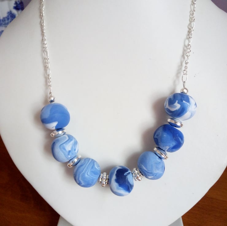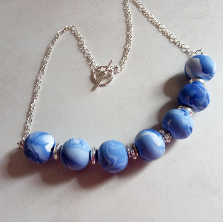 Beads measure 16mm and hang from a Silver Plate Figaro Chain and closes with a Silver Plate Toggle