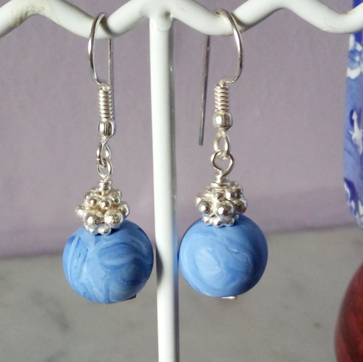 They match the Necklace and measure 3/4 of an inch from bottom of ear wire.