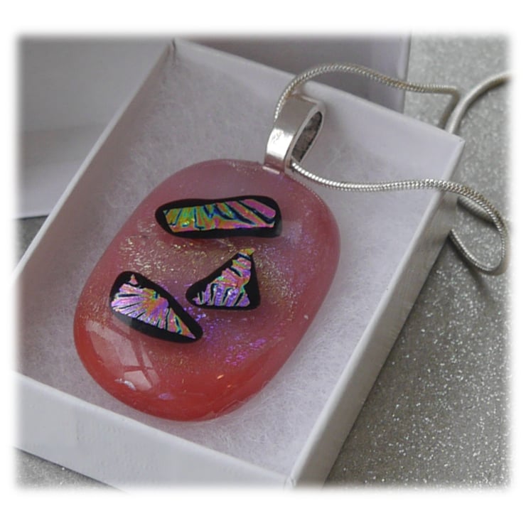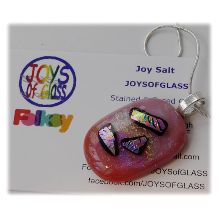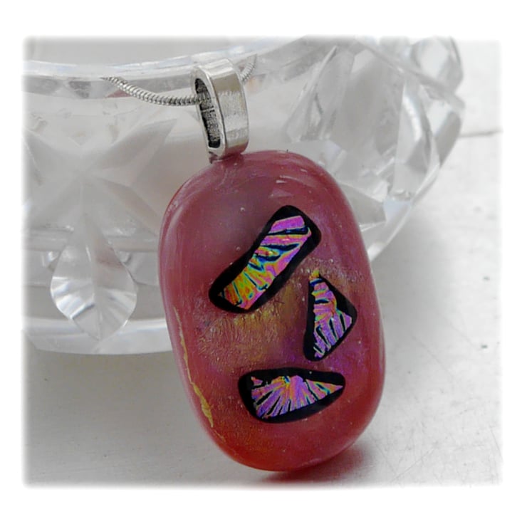 Dichroic Glass Pendant 116 Rose Pink Shimmer with silver plated chain