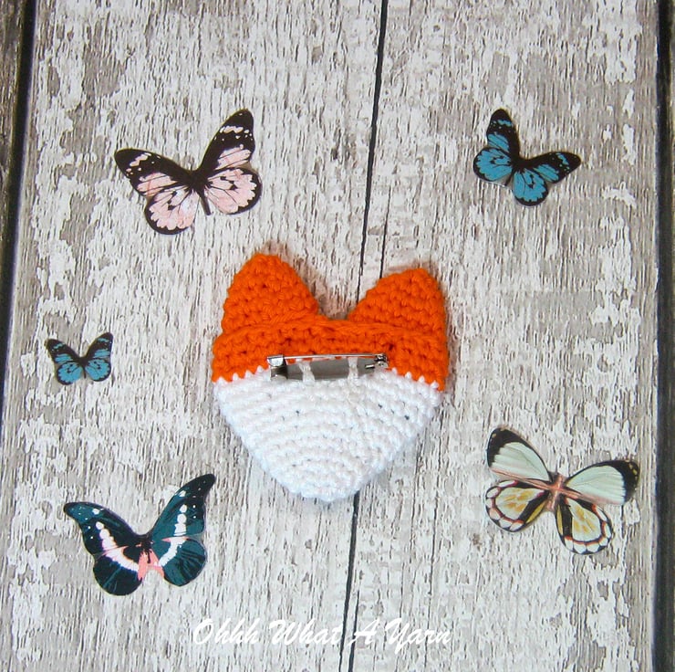 This gorgeous crochet fox brooch is crocheted with 100% mercerised cotton yarns.
