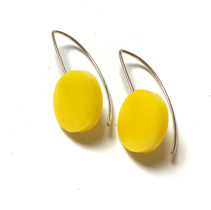 Acrylic and silver earrings. Circle is 16mm and total length/drop is approximately 30mm. This vibrant yellow is like a little piece of sunshine.