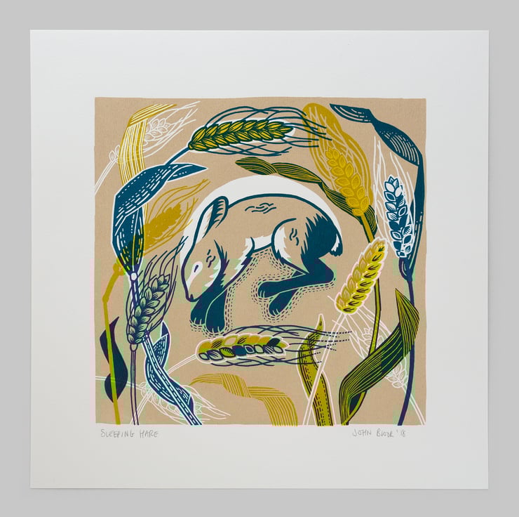This "Sleeping Hare" screen print is hand pulled (hand printed). Each one is named, signed and dated by me.