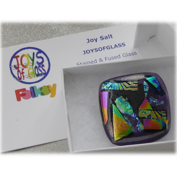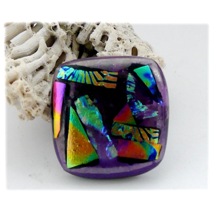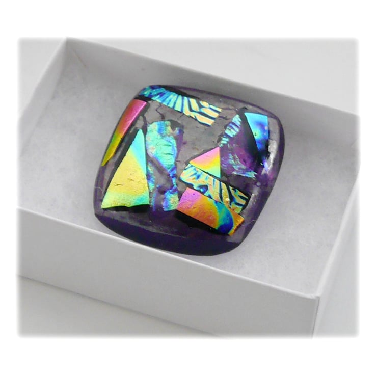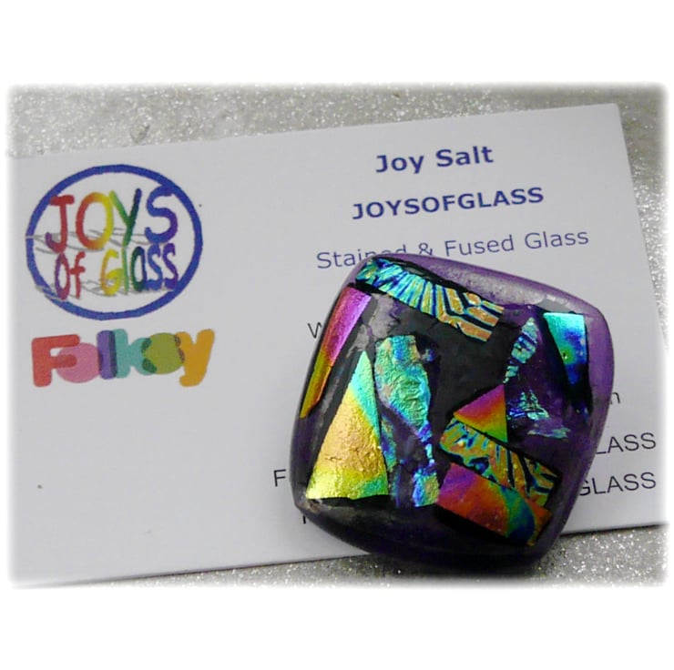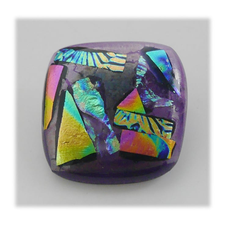 The dichroic glass cabochon for this brooch was handmade, by me, with love.