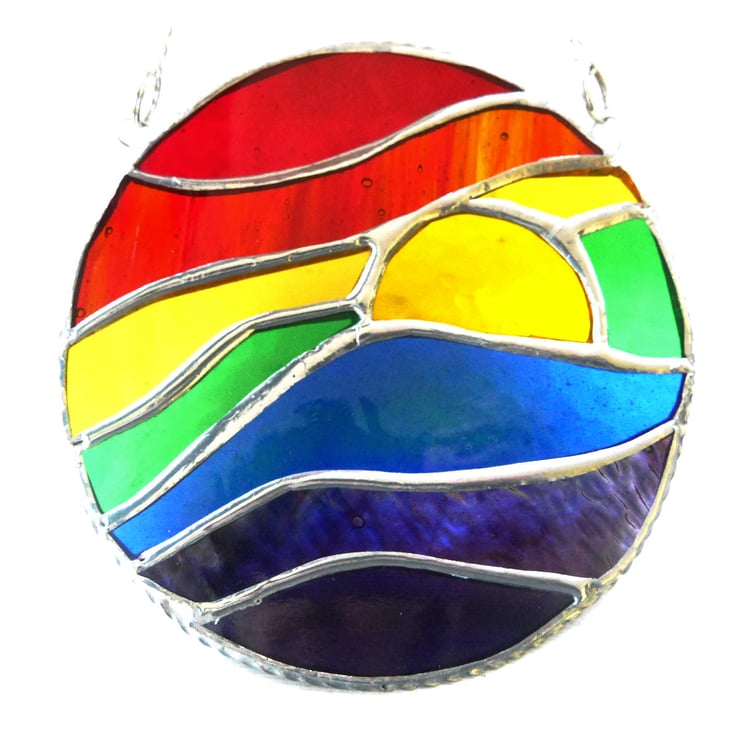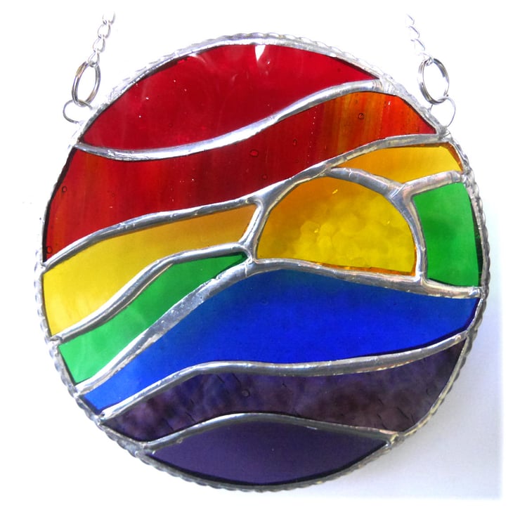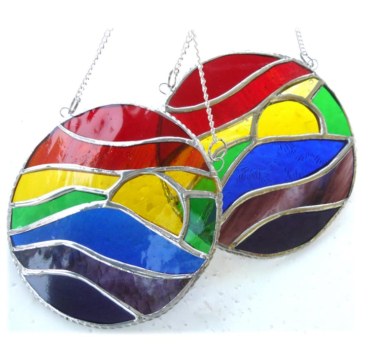 I have two of these for sale. Same design but by using slightly different glass for the rainbow colours on each, they are unique as I prefer all my glass pieces to be.