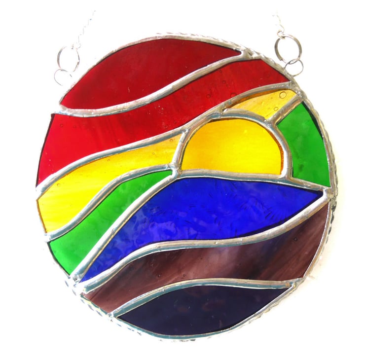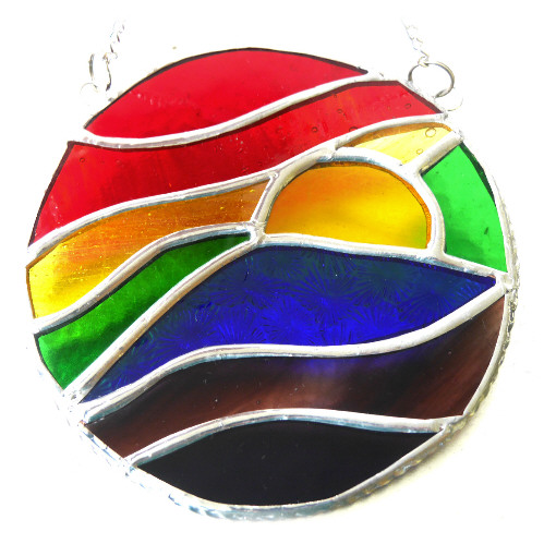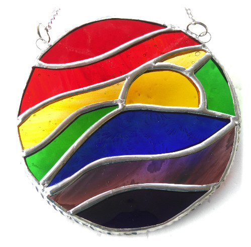 This is a stained glass suncatcher made using the Tiffany copper foil technique.