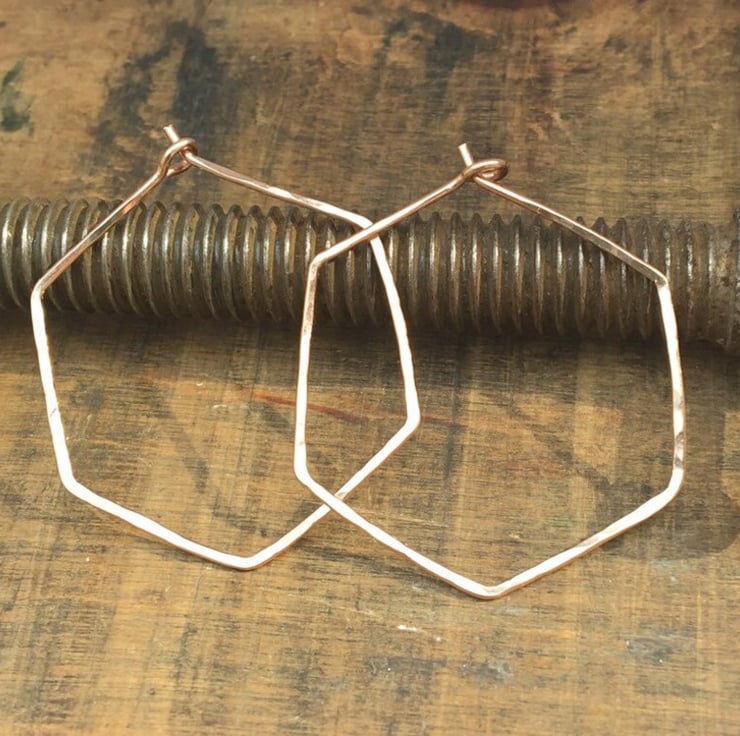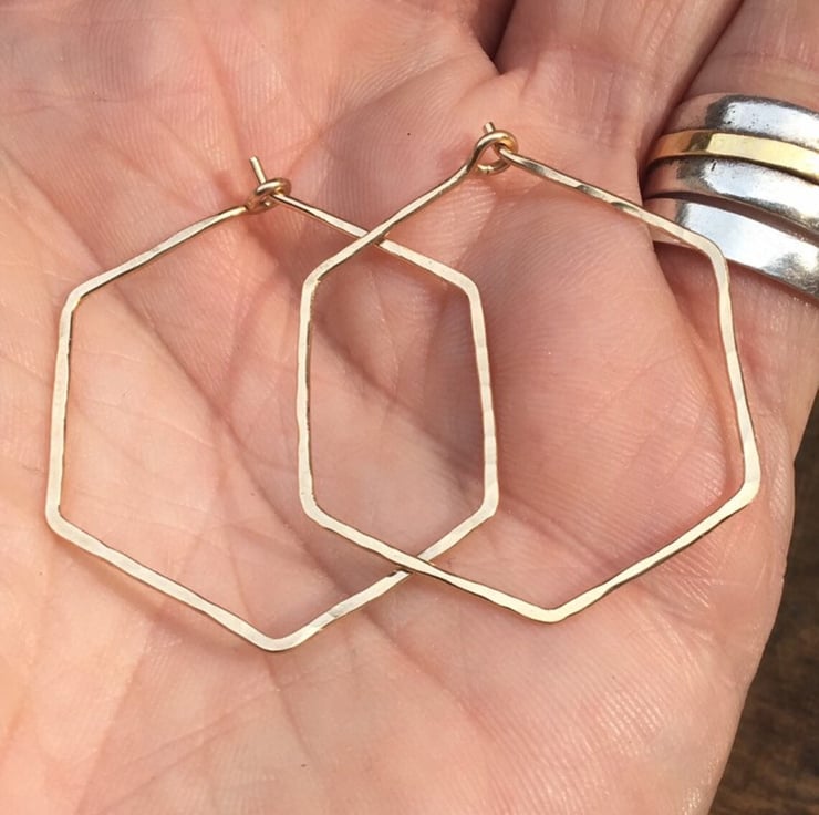 14ct Gold Fill Hexagonal handmade Textured Silver Hooped Earrings