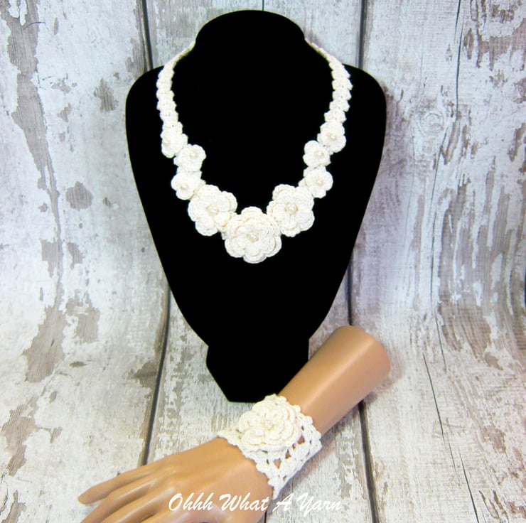 I had lots of lovely cotton crochet yarns and I wanted to make something a wee bit different and I decided to try my hand at some jewellery, I love how this has come out and it would be perfect bridal jewellery.
