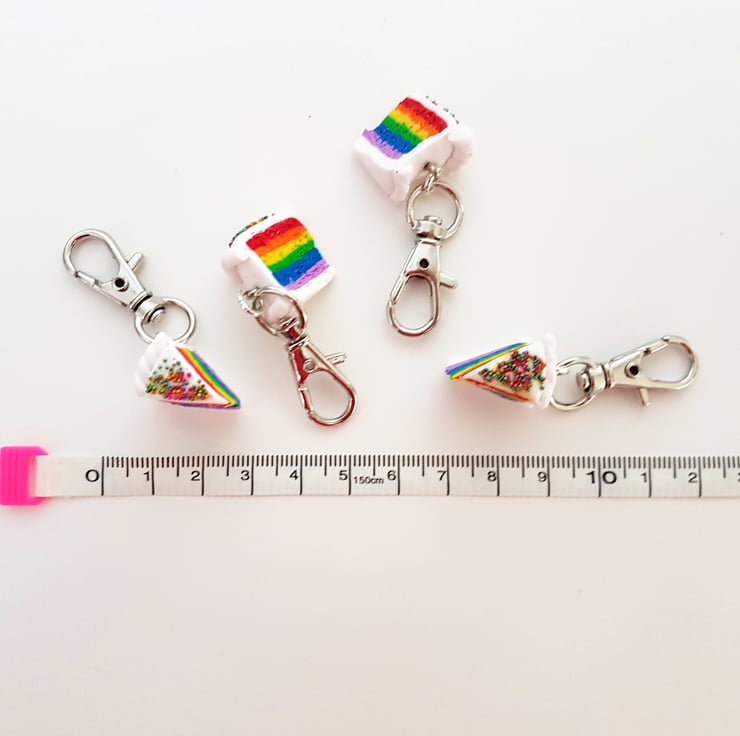 This listing is for A SET OF FOUR gorgeous mini rainbow cake slices, complete with multicoloured sprinkles! Sprinkles are made from nail caviar beads!