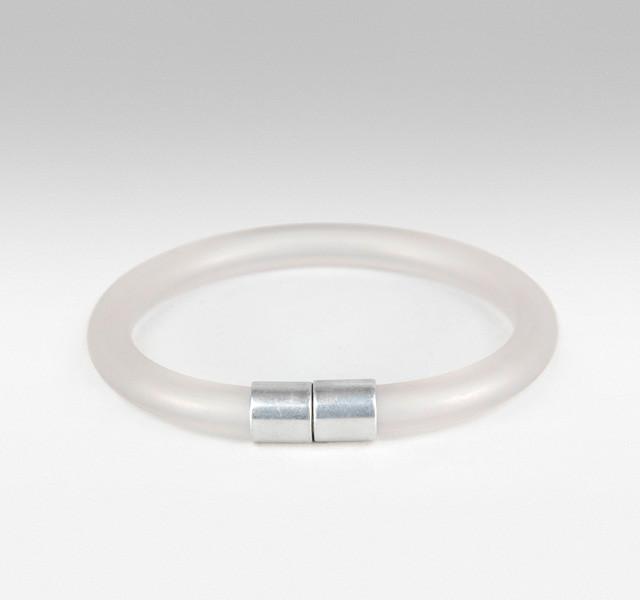 Click is collection of colourful magnetic jewellery designed for every day wear. The matt finish give these bangles a sophisticated timeless feel. The tubing is plastic (pvc) and is produced in a factory in Cornwall which I visit periodically to mix and sample the colours. The metal detail is aluminium.