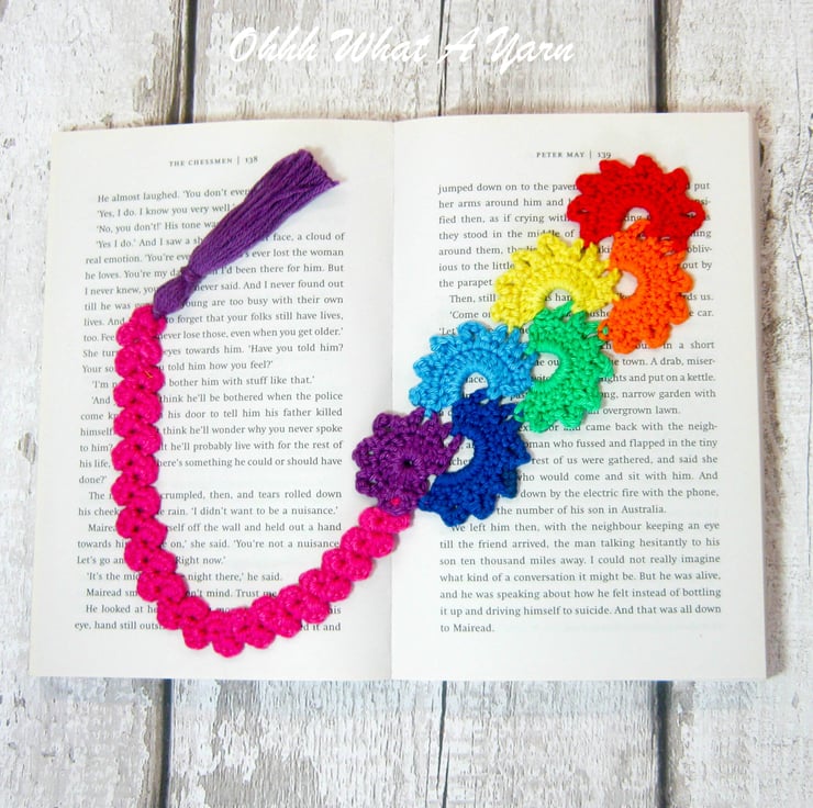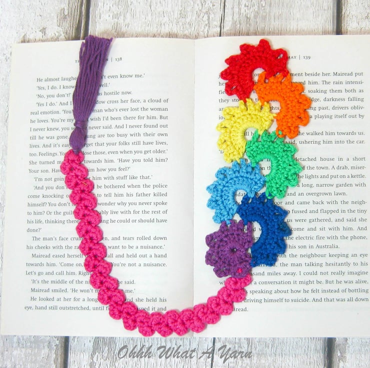 This colourful rainbow bookmark is crocheted using premium 100% cotton mercerised yarns,