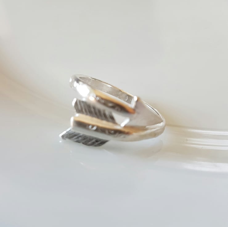 This is a really cool ring, I can do different stamp finishes and even make an antique silver version, this can take up to 2 weeks to make as the original arrow is cast, just message me for an estimate date of delivery as I might have these in stock already.