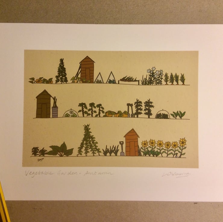Vegetable garden - Autumn - signed print of vegetable gardens.