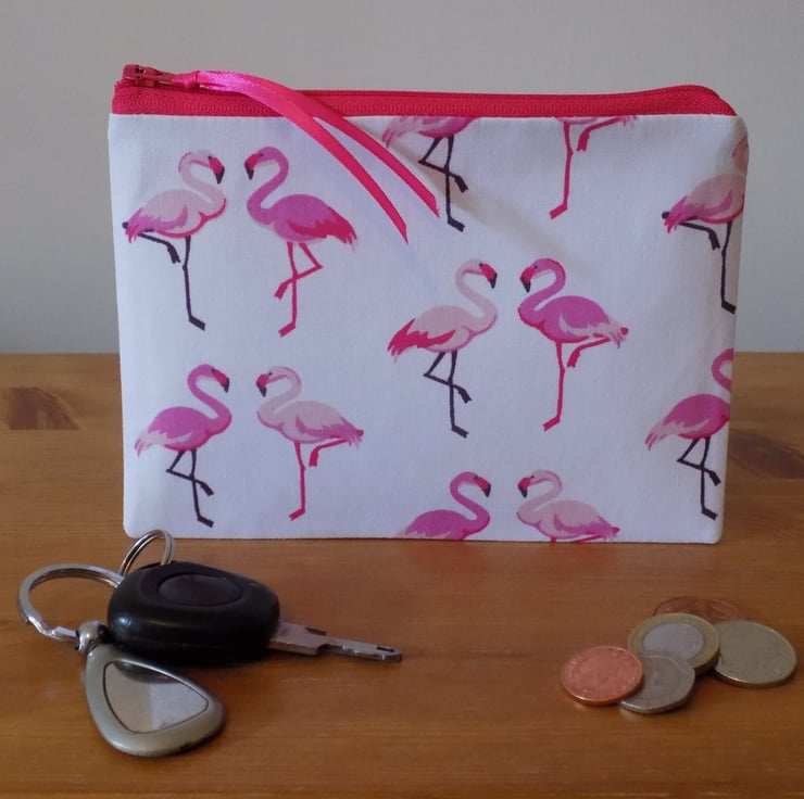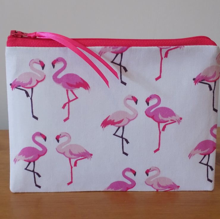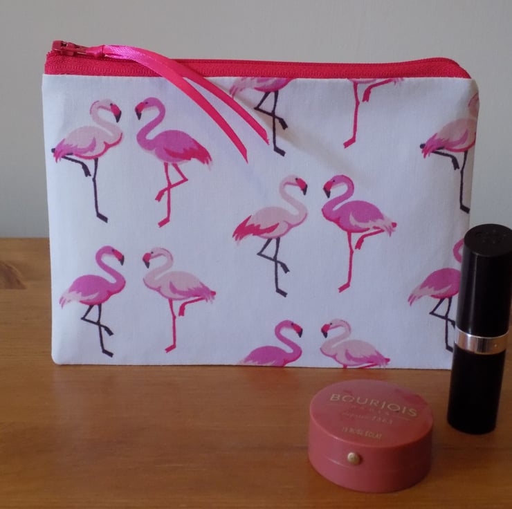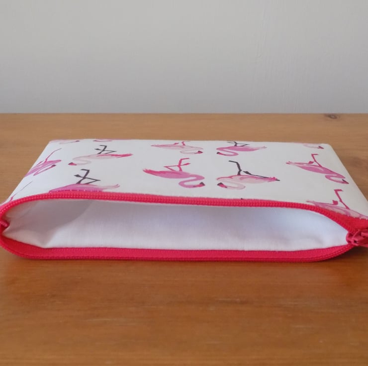 It is made from a lovely quality 100% cotton fabric, featuring pairs of pink and cerise coloured flamingos on a white background.