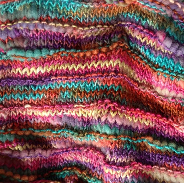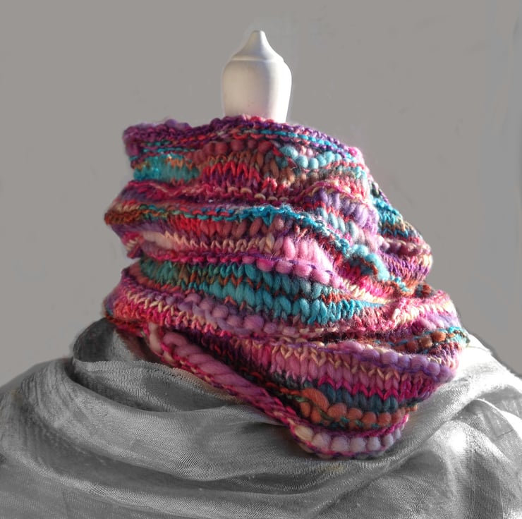 Hand knitted loose fitting cowl to cheer up a chilly day, a breezy walk or bike ride.