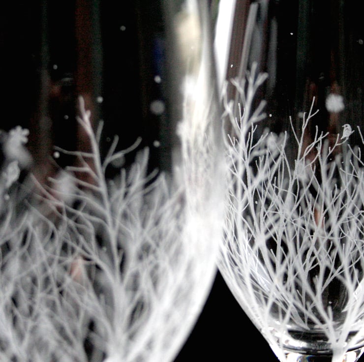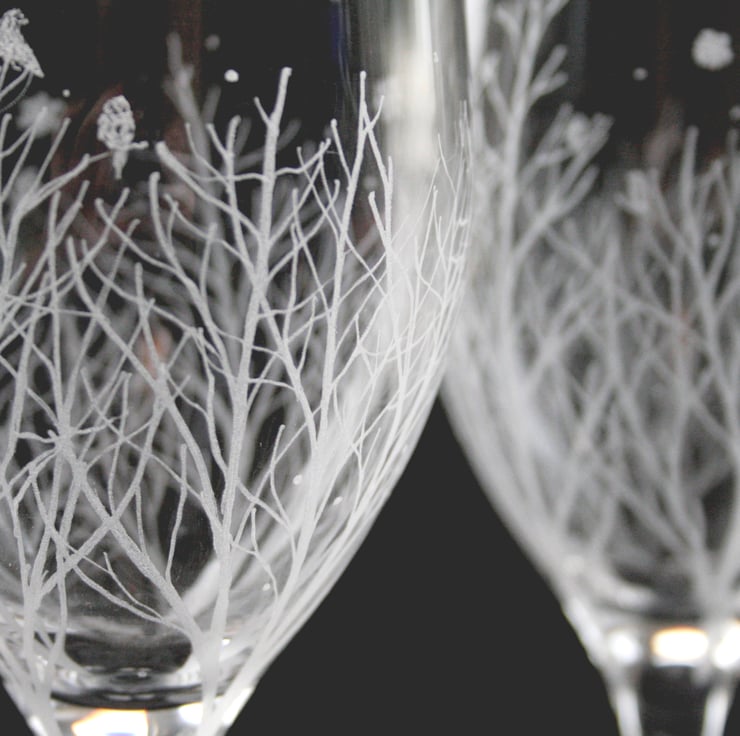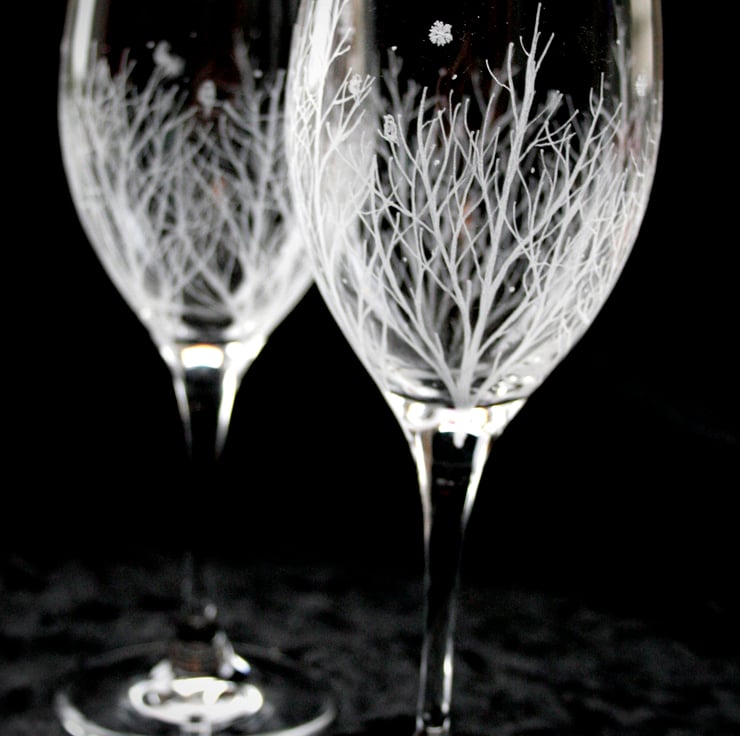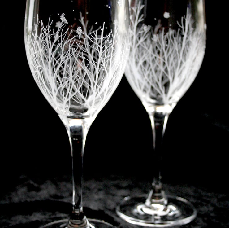 Each glass in engraved by hand so your glasses will slightly differ from those shown in the picture.