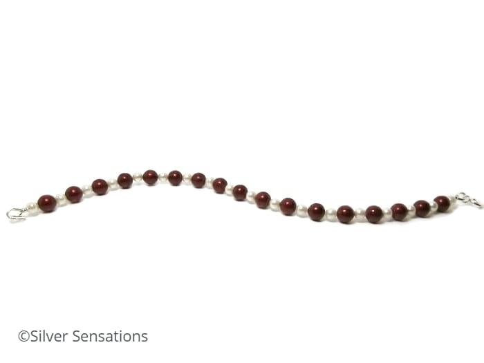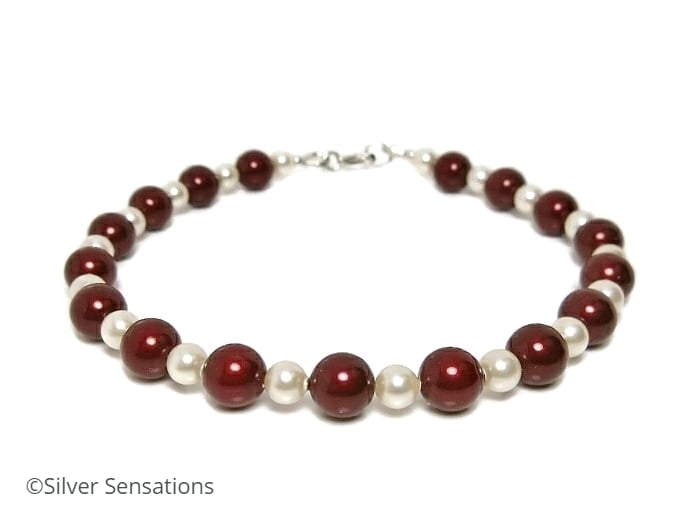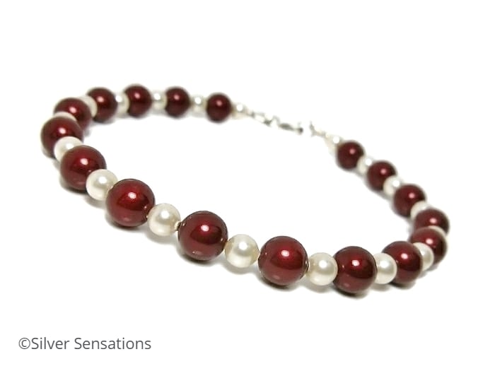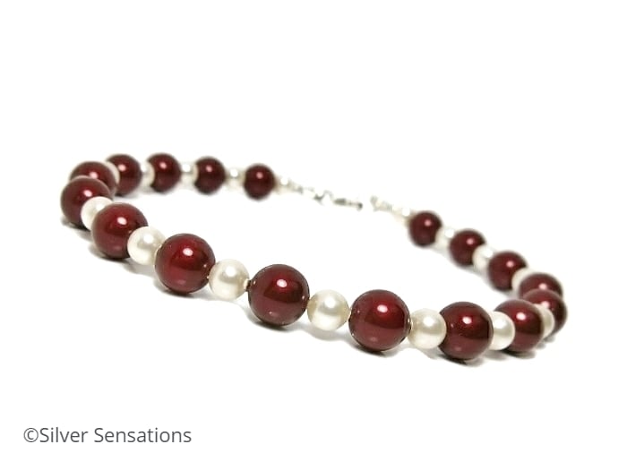 This richly coloured bridesmaids, or Mother of the Bride, bracelet has 6mm burgundy red Swarovski Pearls from the Swarovski Elements Range.