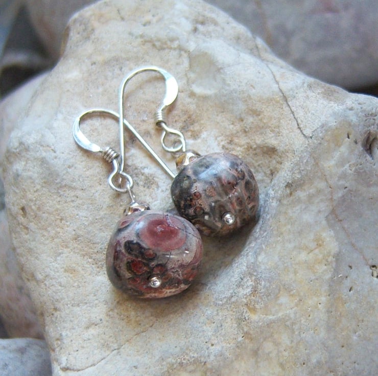 Matching Leopardskin Jasper Necklace and Earrings with sterling silver