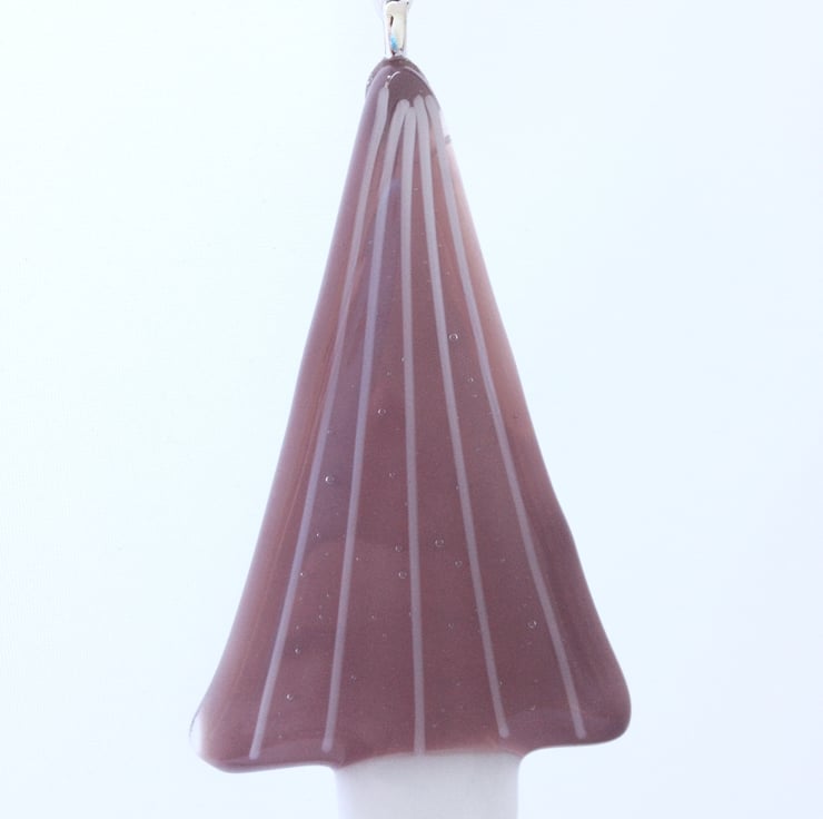 This lovely tree decoration is made with two layers of glass, one lilac, one clear and then a white base. Thin white strings of glass were added on top to create the pattern to make this unique item. It was fused to 800 degrees Celsius to fuse into one solid piece. It measures approximately 90mm by 51mm and is hung on white ribbon. It’s perfect as a Secret Santa or teacher’s gift or even just a treat for yourself.